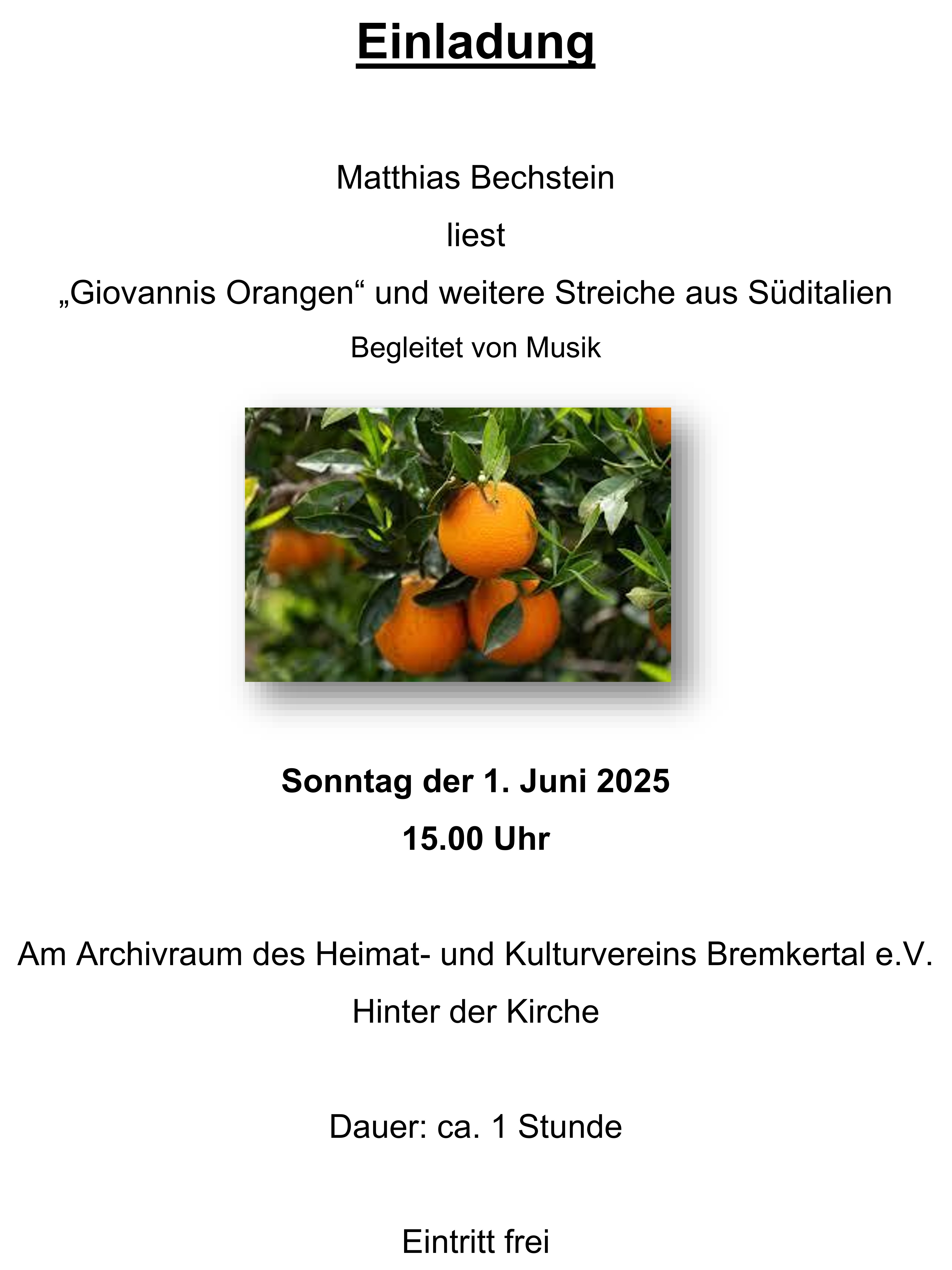 Matthias Bechstein liest am Sonntag, den 4. Februar 2024 Kurzgeschichten im Gemeindehaus in Bremke.