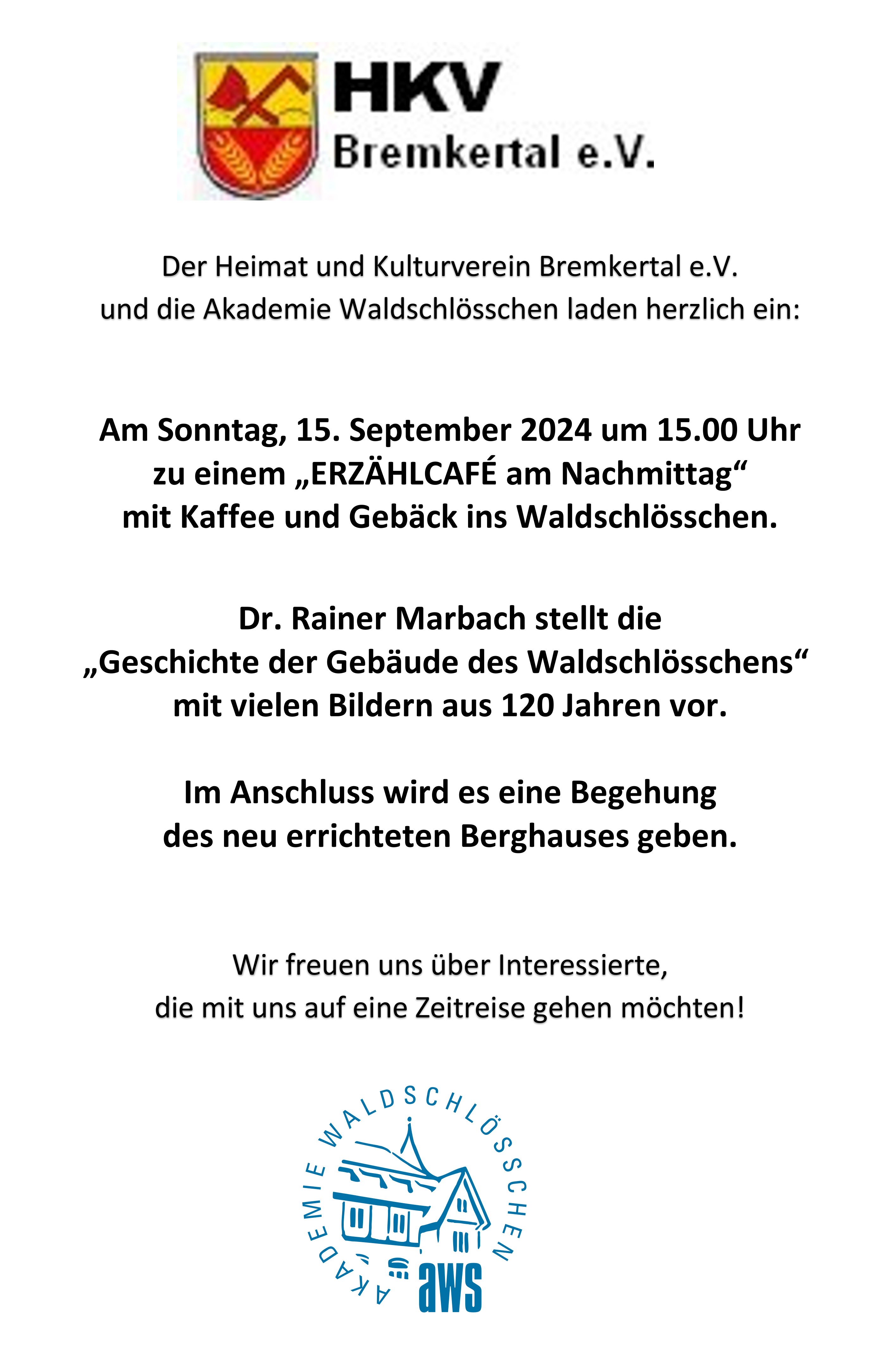 15.05.2024 - Erzählcafé im Waldschlösschen